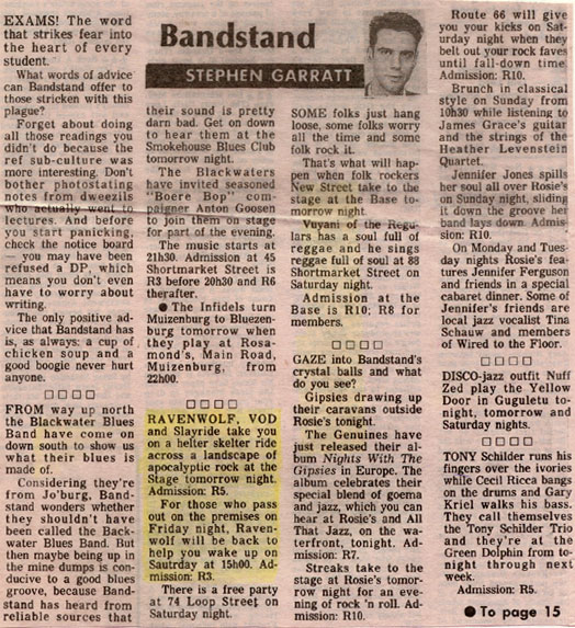 COMMENTS: Taken from the Argus "Tonight" suppliment dated: Thursday 24 October 1991.