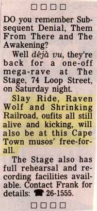Taken from Argus weekender suppliment 22 october 1992 page 8